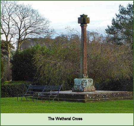 In one corner of the green stands the Wetheral Cross, once a market cross, which previously occupied a position at the centre of the green.